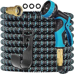 Garden Hose 50 FT,304 Stainless Steel Heavy Duty Water Hose with 7 Function Nozzles No-Kink Rust Proof for Yard Outdoor