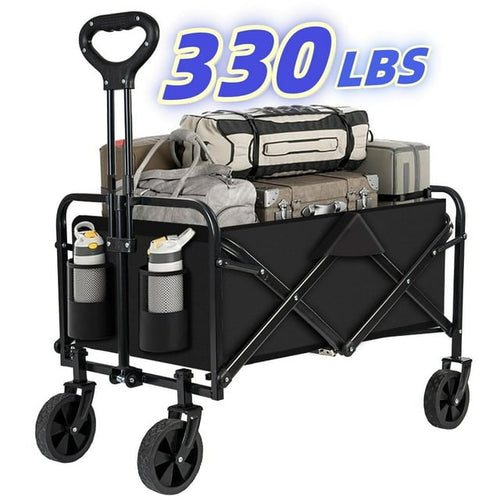 Collapsible Wagon Cart, Foldable Lightweight Wagon, 330LBS Weight Capacity Portable Folding Utility Wagon for Camping, Beach, Outdoor