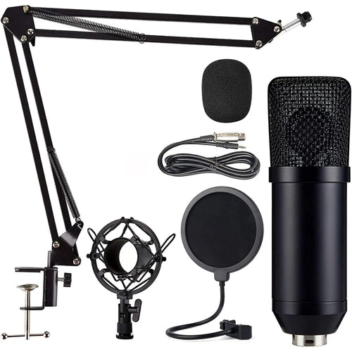 Condenser Microphone Computer Mic Kit Professional Studio Recording Bundle for Streaming Gaming Broadcasting Singing Videos with Arm Stand Shock Mount Pop Filter and Sound Adapter